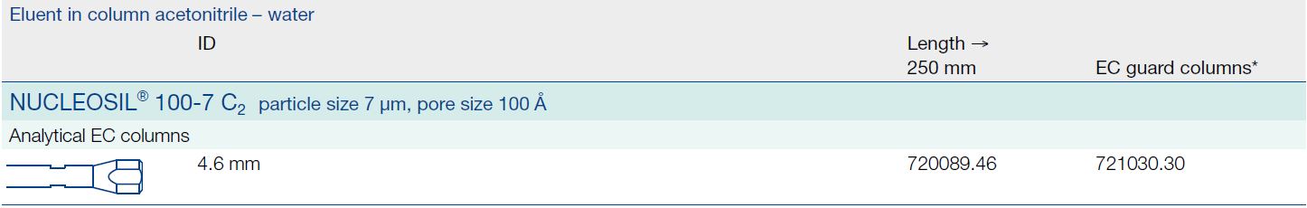 Columnas Nucleosil® C2 ; 7 µm; Tamaño poro 100 Å; Not Endcapped,