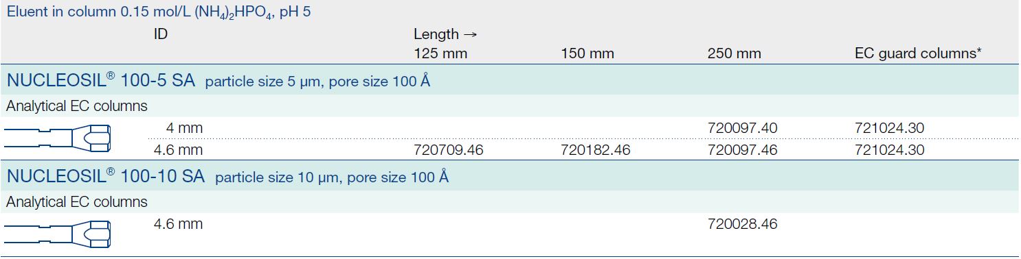 Columnas Nucleosil® SA ; 5 µm; Tamaño poro 100 Å;