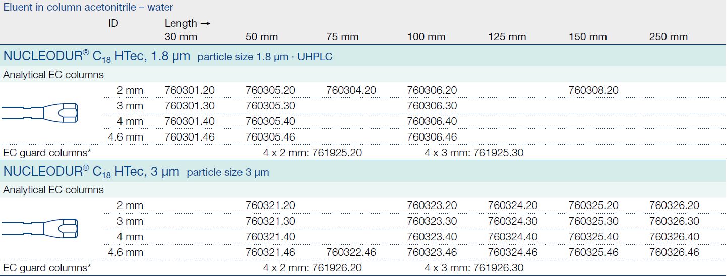 Columnas HPLC Nucleodur® C18 HTec 3 µm