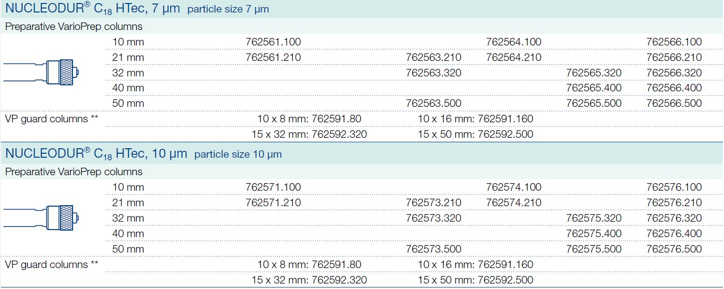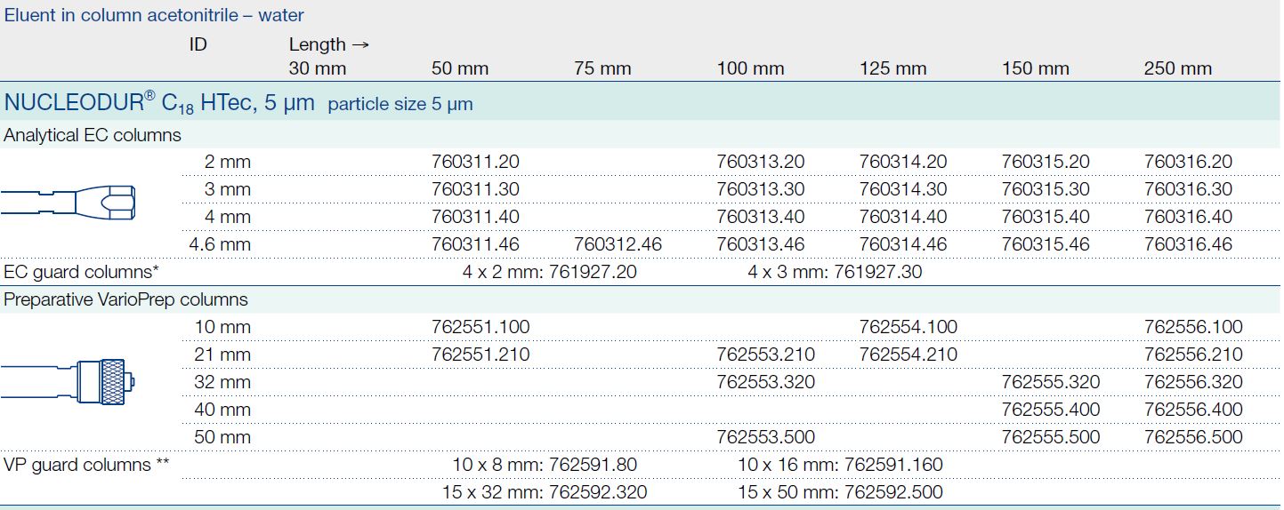 Columnas HPLC Nucleodur® C18 HTec 5 µm