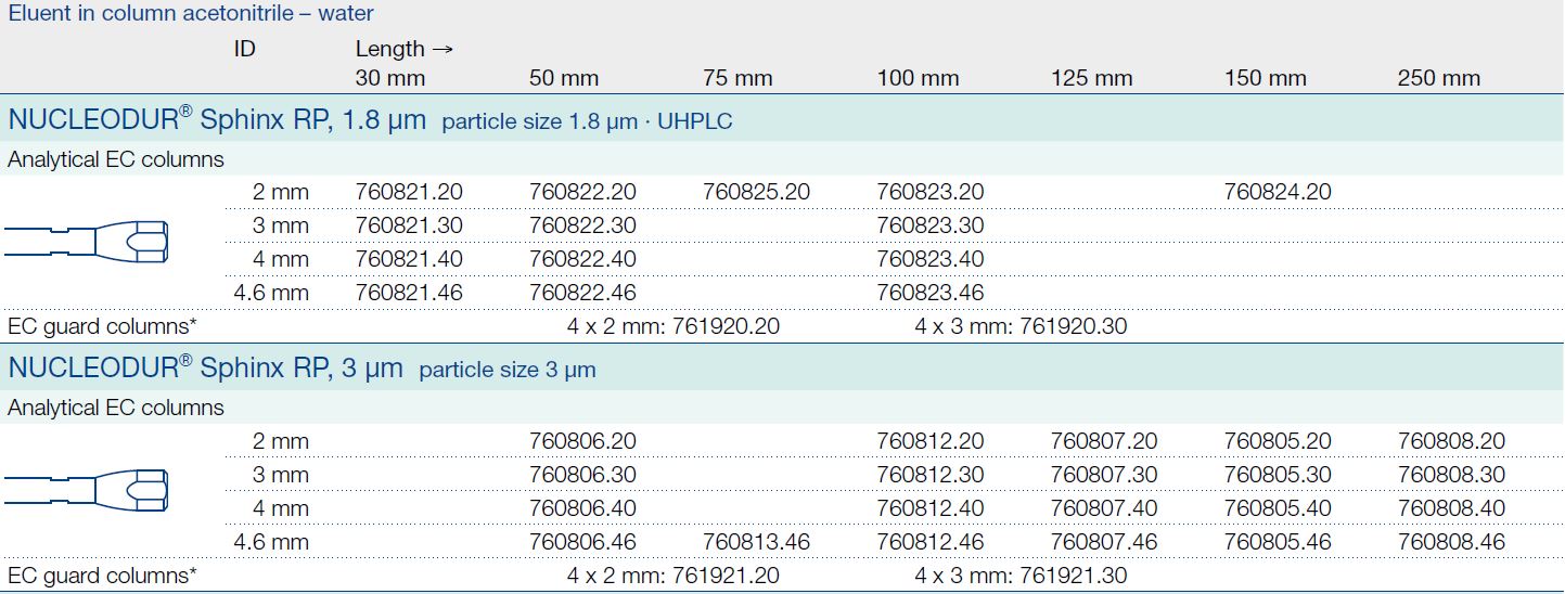 Columnas UHPLC Nucleodur® Sphinx RP 1,8 µm