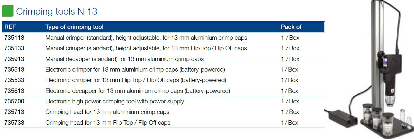 MN-735513 Crimper Sellador electrónico para tapas Aluminio 13 mm ( N13 ) Envase de 1 Unidad