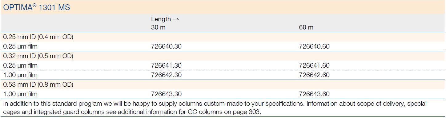 OPTIMA® 1301 MS ; 6% Cyanopropyl-phenyl / 94% dimethylpolysiloxane USP G43
