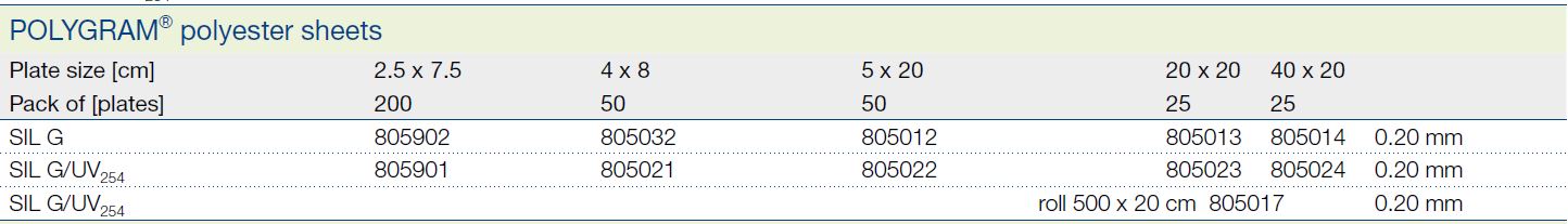 Placas TLC Sil G Polygram® ; Base de Poliester
