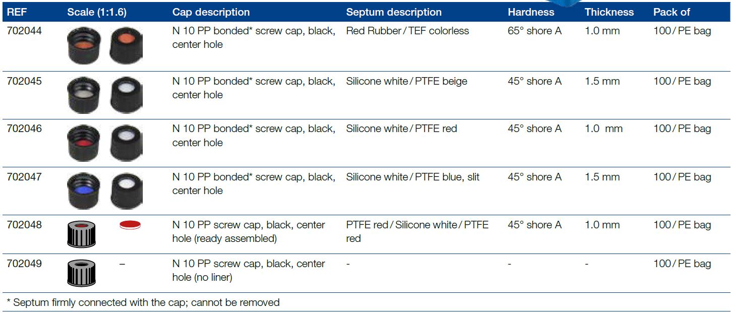 Favor vea nuestro Catalogo de Viales y Tapas Macherey Nagel para más detalles.