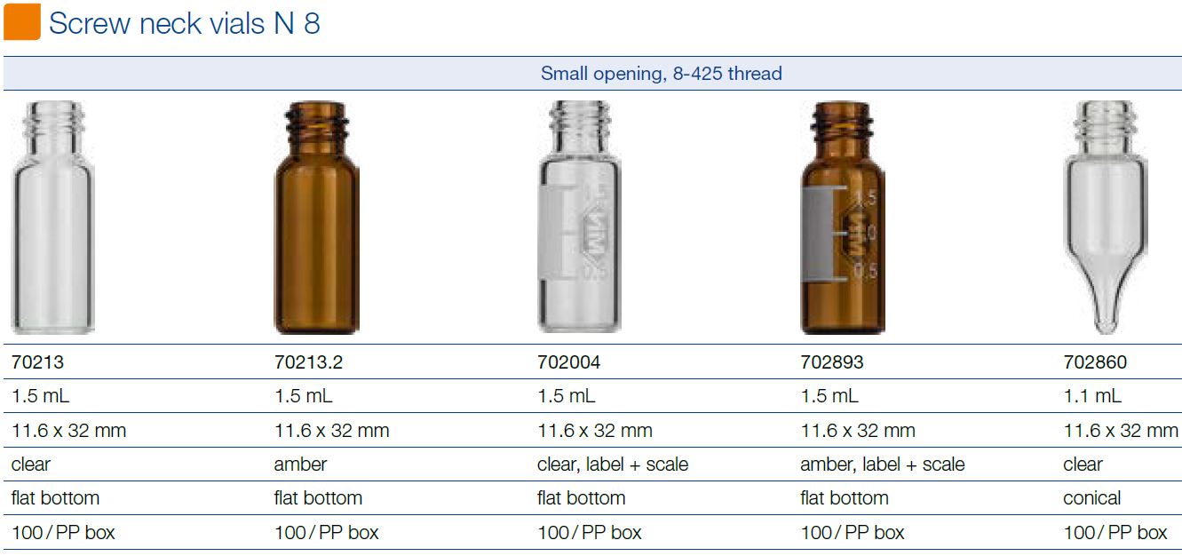 Favor vea nuestro Catalogo de Viales y Tapas Macherey Nagel para más detalles.