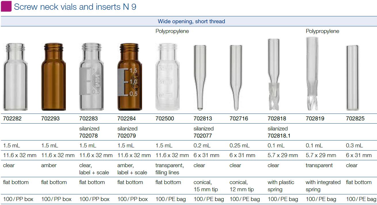 Viales para Tapa Rosca N9 e Insertos (HPLC y GC)