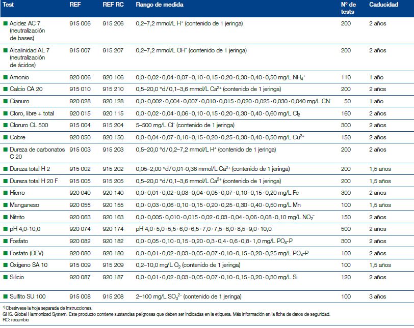 Para estos tests se ofrecen kits de recambio a precio competitivo. Los kits de ensayo VISOCOLOR® HE se suministran en una caja de plástico estable con un molde termoconformado y una hoja de instrucciones fáciles de comprender.